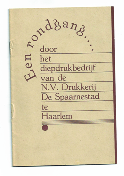 Ook wij gaan nu de deur uit! We passeeren nog de Rotatieboekdrukkerij (hoogdruk), met haar verschillende hulpafdeelingen; de Vellendiepdrukkerij, de Vellenboek- drukkerij en het Papierrollenmagazijn: een enorme op- slagplaats waar de rollen papier hun tijd afwachten om ,,aan den haak geslagen’’ te worden, en aan een rail hangend tot voor de persen gerold te worden. In de verte vangen we hog een glimp op van de Inktfabriek, doch het is voor dezen keer genoeg geweest. Ik denk dat ge, als ge weer eens een illustratie leest, niet alleen de afbeeldingen zult bekijken, doch ook zult terugdenken aan het ingewikkelde doch mooie diepdruk- procédé !